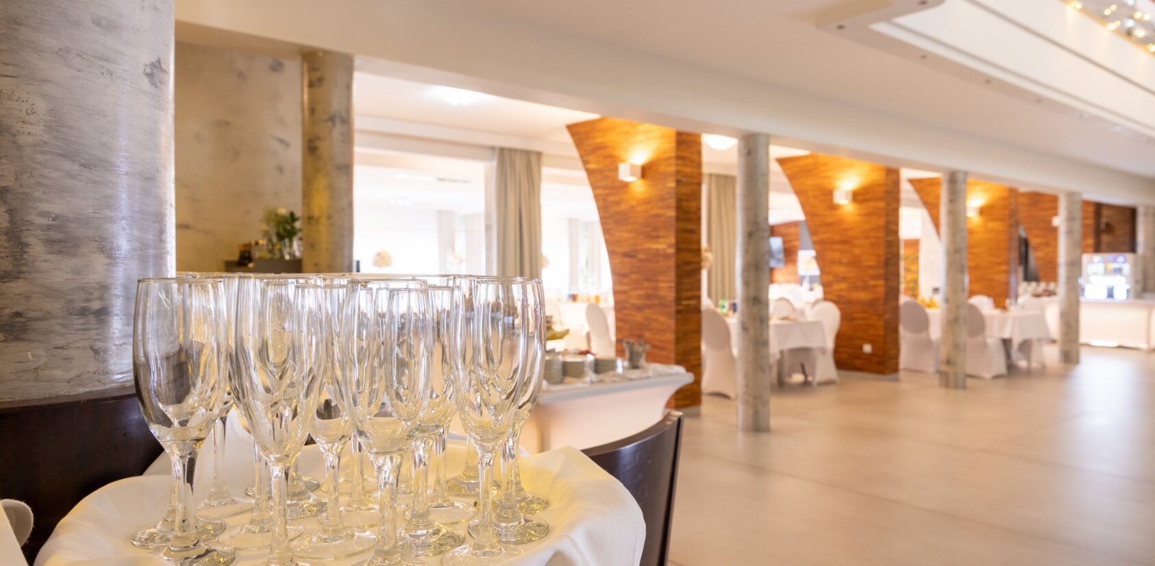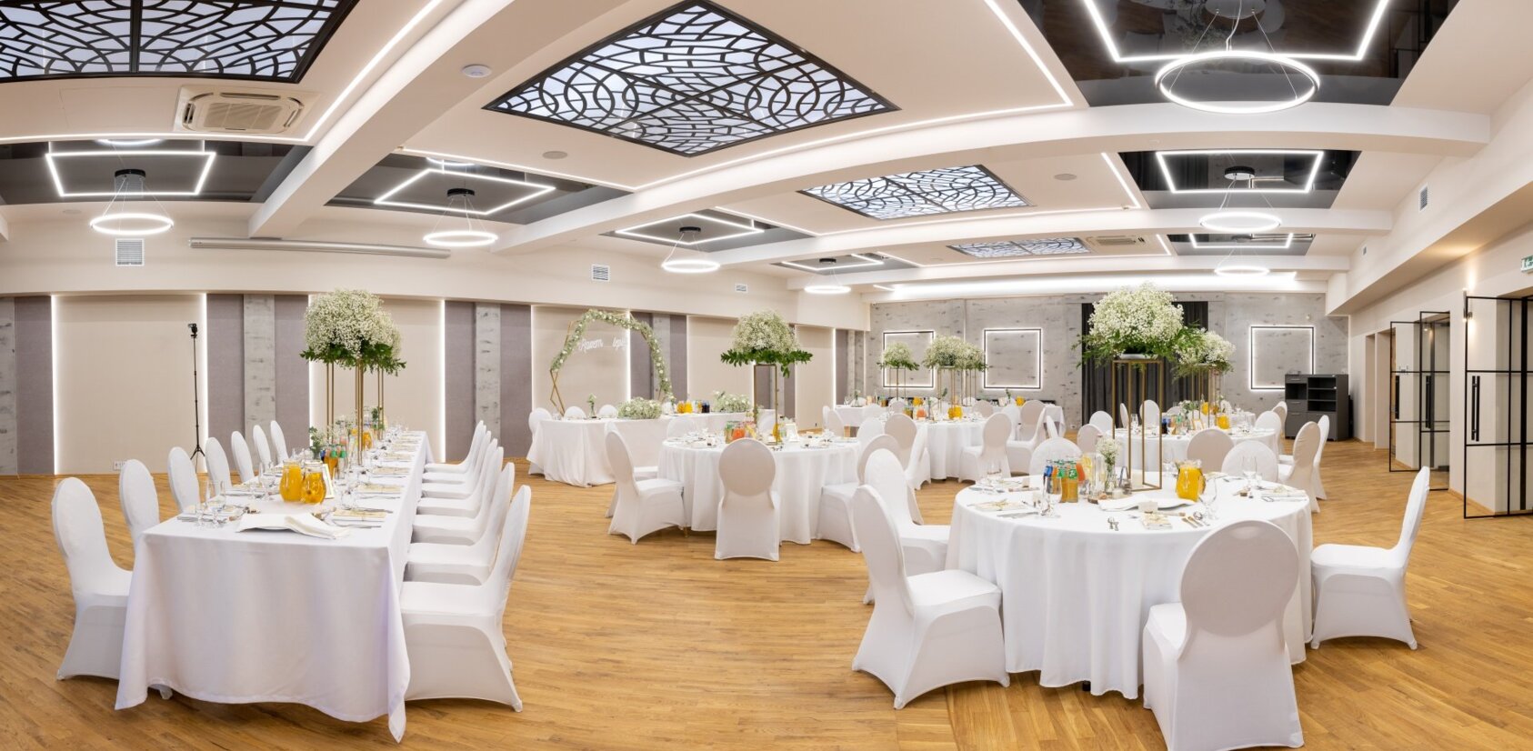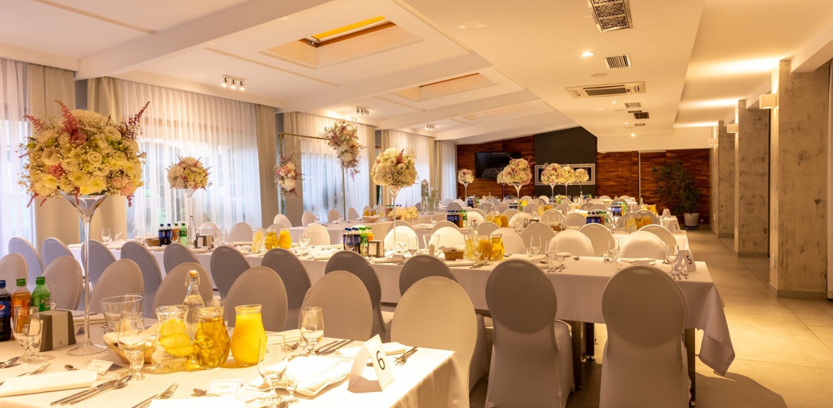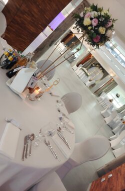 We offer you a perfectly arranged reception, with professional, friendly, and smiling staff, in comfortable and air-conditioned interiors, with an exquisite and tasty menu. We can arrange a wedding for up to 350 guests.