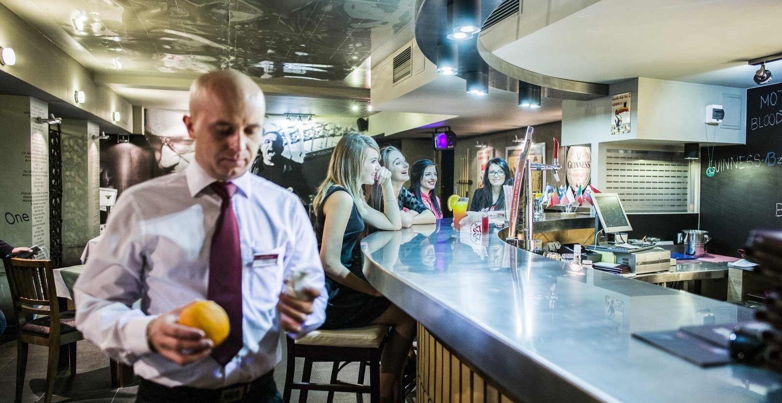 Pub Dublin dysponuje świetnie zaopatrzonym barem z alkoholami z całego świata, w tym oczywiście także irlandzkim piwem Guinness.
