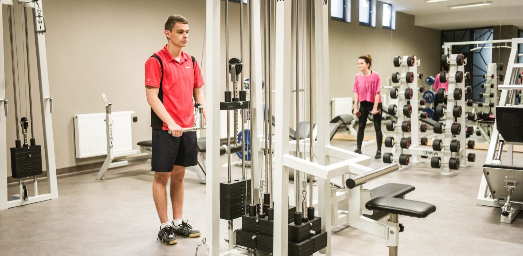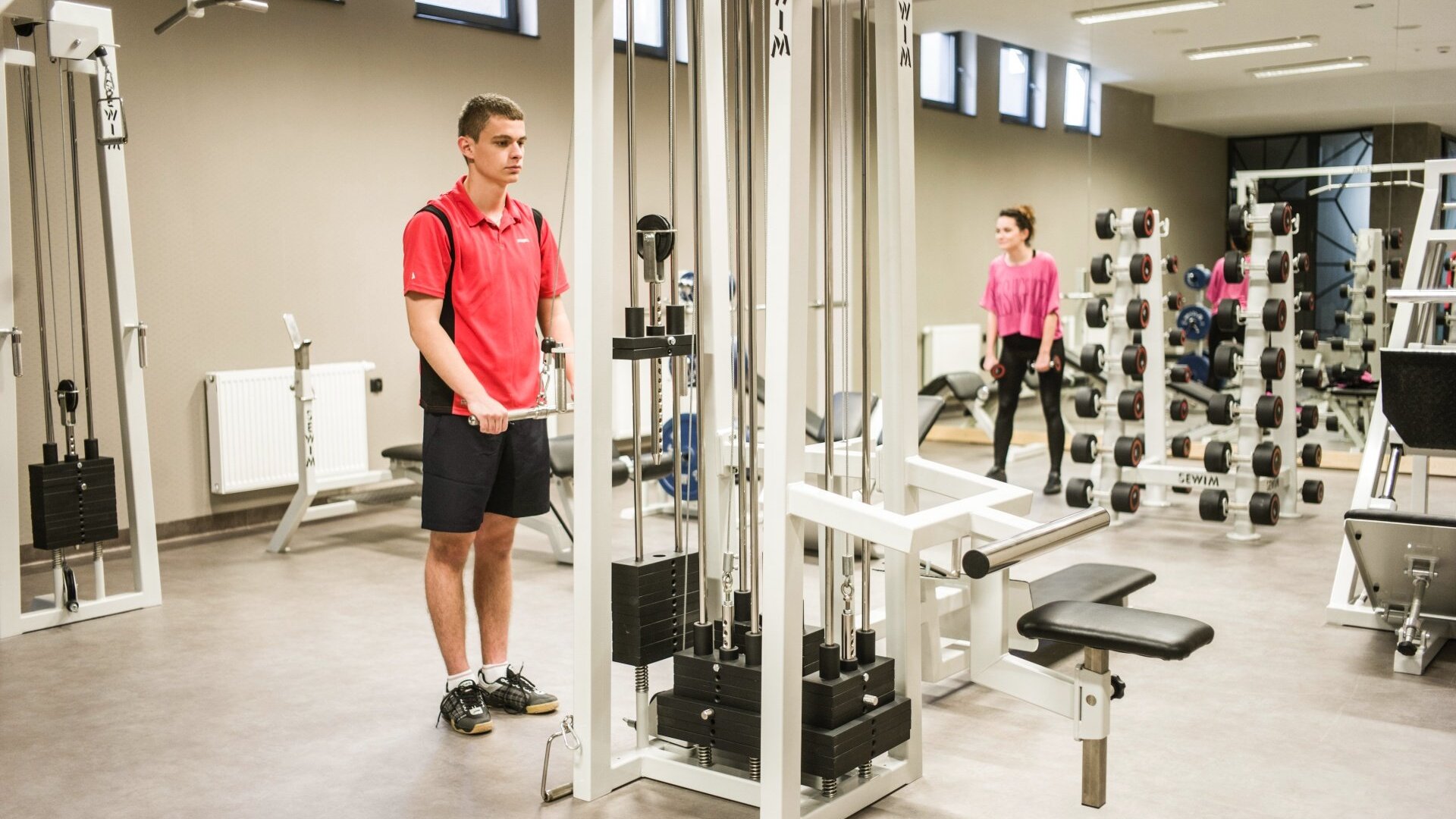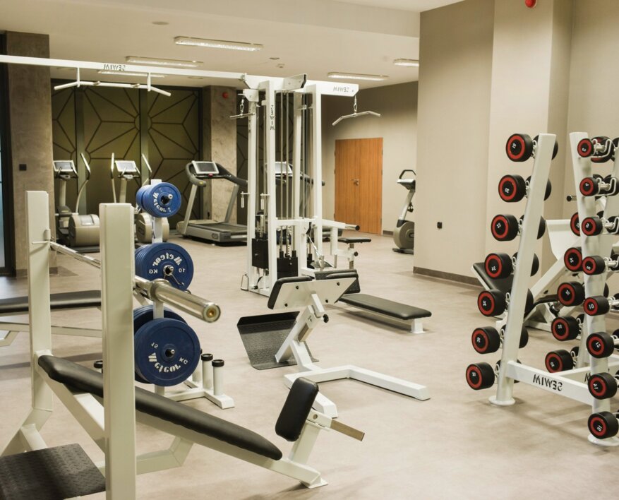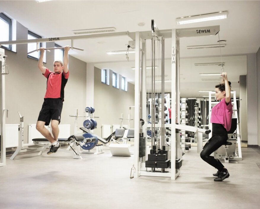 Na poziomie -1 na ponad 100 metrach kwadratowych powstała siłownia wyposażona w nowoczesny, specjalistyczny sprzęt do ćwiczeń najwyższej klasy. Pozwala on na przeprowadzenie szerokiego zestawu ćwiczeń angażujących różne partie mięśni. Możliwość nieodpłatnego korzystania z sali do ćwiczeń zapewniamy wszystkim Gościom nocującym w hotelu.